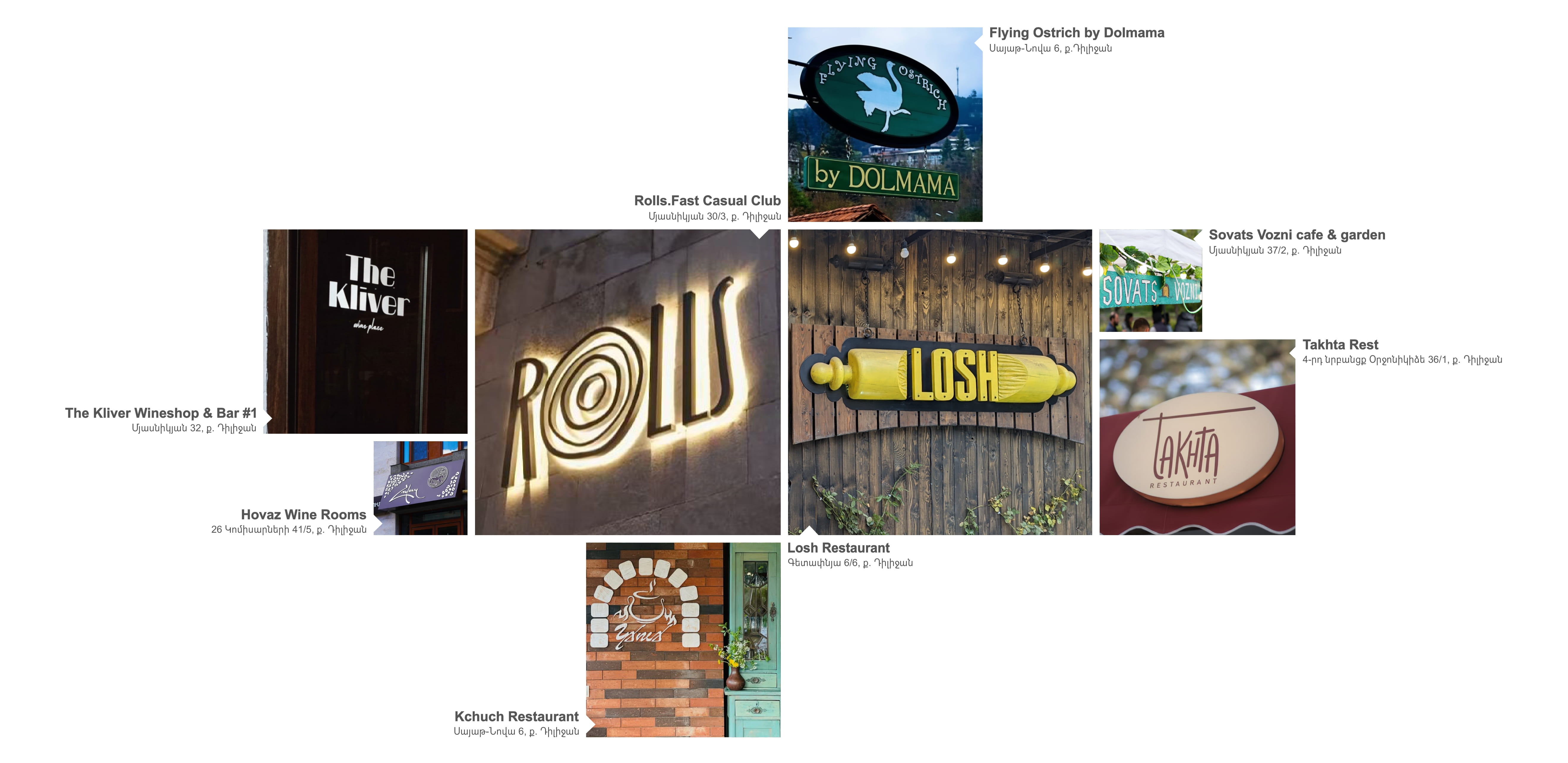Գինու խանութ, բար, 1 անձի համար՝ 6000-8000 ՀՀ դրամ, հասցե՝ Մյասնիկյան 32, ք. Դիլիջան: